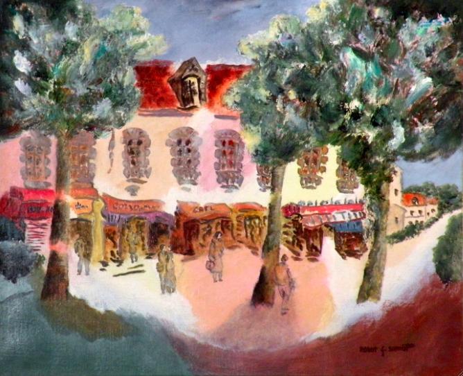 Les sujets favoris de Robert G. Schmidt : les paysages avec des petites places de village de la vallée de la Loire et leur clocher, des quartiers de Paris animés de personnages se fondant dans le décor, des villages méditerranéens et bretons avec des bateaux mouillants dans la baie.